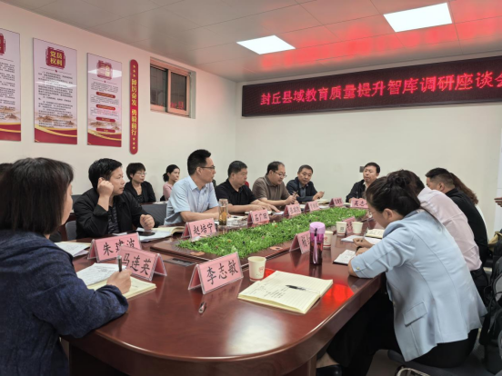调研组与封丘县教育体育局主要领导及相关负责同志进行了深入座谈。封丘县教体局党组书记、局长石广田,副局长张瑞凯,以及基础教育股、教师教育股负责同志,各学科教研员,小学、初中、高中三个学段的董事长代表参加了座谈会。